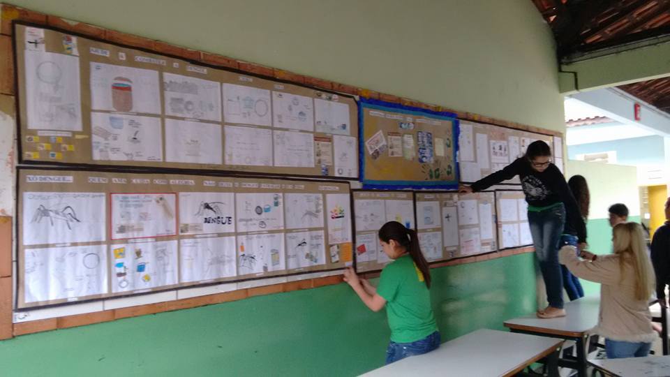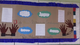 Projeto A desmistificação do 13 de Maio, alunos com a professora Olinda montando o mural do projeto.